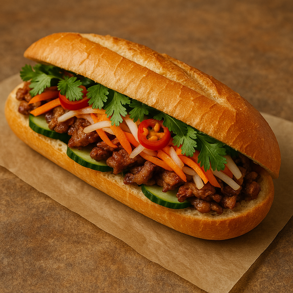 갓 구운 바게트에 신선한 재료를 듬뿍 넣은 최고의 반미를 맛볼 수 있습니다.